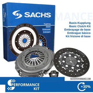 Beinhaltet verstärkte SACHS Druckplatte, Kupplungsscheibe mit Performance-Kupplungsbelag und Ausrücklager.
