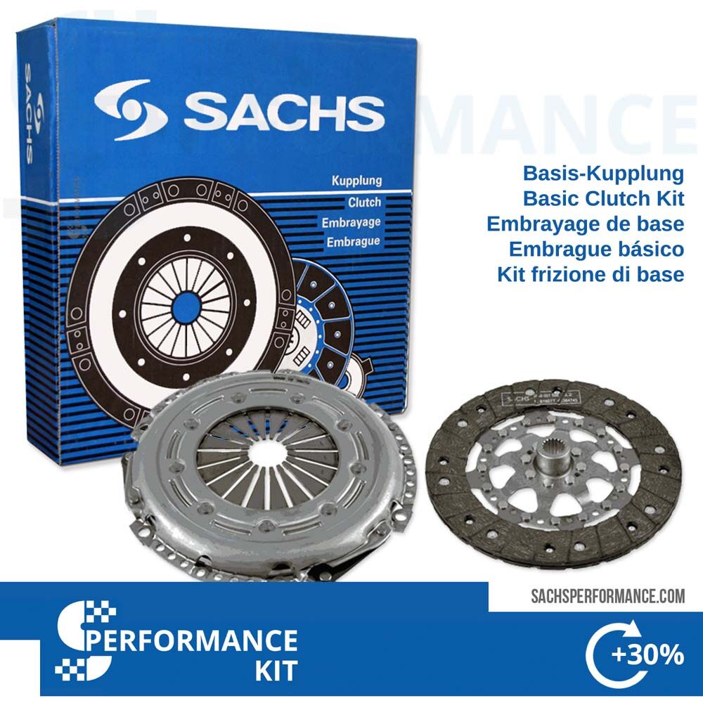 Beinhaltet SACHS Kupplungsdruckplatte, Kupplungsscheibe mit Performance-Kupplungsbelag und SACHS Ausrücklager.