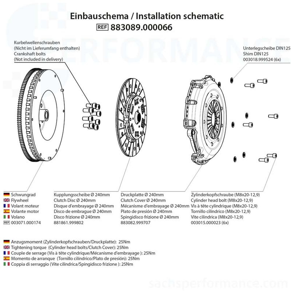 Performance Umrüstkit: Kupplung mit Schwungrad zum Vorteilspreis, bestehend aus der der verstärkten SACHS Performance-Druckplatte, der torsionsgefederten, organischen SACHS Performance Kupplungsscheibe und Einmassenschwungrad. - Einfacher Austausch gegen Ihre alte Kupplung und Schwungrad. Das originale Zweimassenschwungrad wird durch ein leichtes SACHS Performance Stahl-Einmassenschwungrad ersetzt.