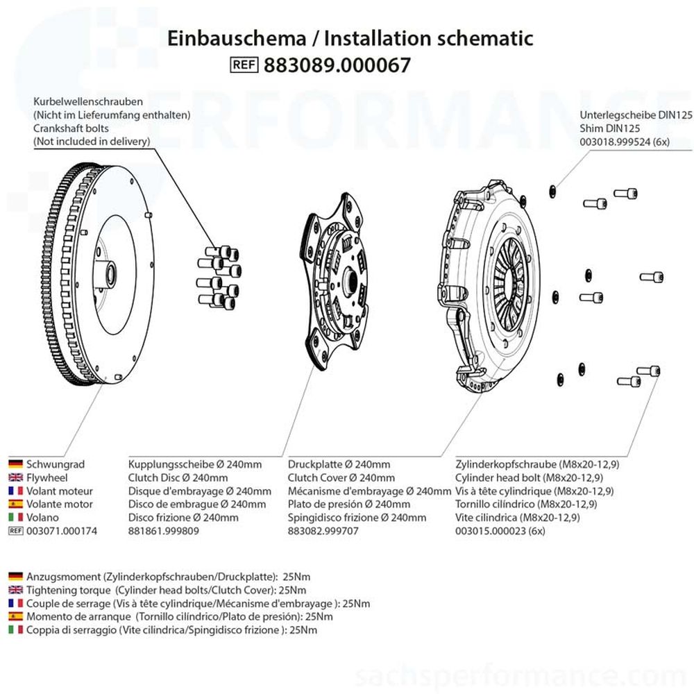 TDas bestehende Zweimassenschwungrad wird durch das hochwertige, leichte Stahl-Einmassenschwungrad von SACHS Performance ersetzt. Weniger rotierende Masse bedeutet ein schnelleres hochdrehen des Motors, eine erheblich verbesserte Gasannahme und eine geringere Belastung der Kurbelwelle samt Lager.