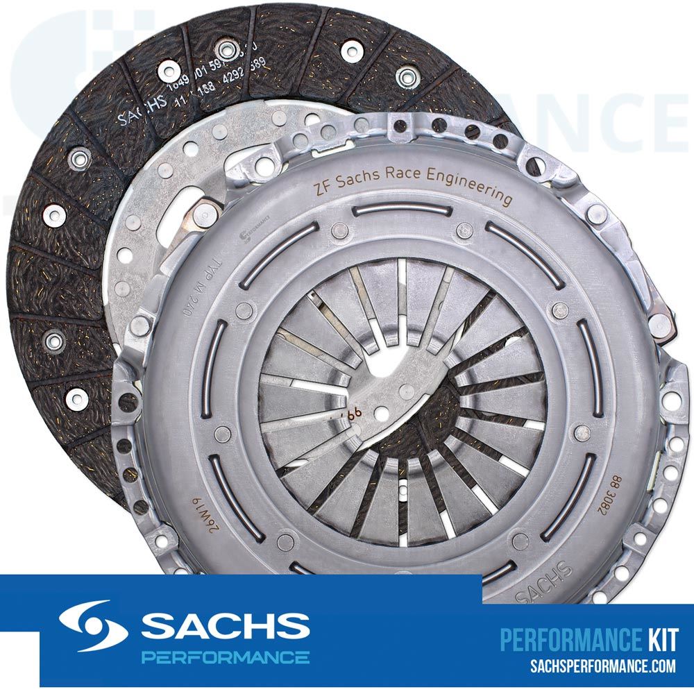 Die SACHS Performance-Kupplung zeichnet sich, gegenüber einer Serienkupplung, unter anderem durch ein höheres übertragbares Drehmoment, höhere Unempfindlichkeit gegen Schubbelastung und thermisch höhere Belastbarkeit aus.