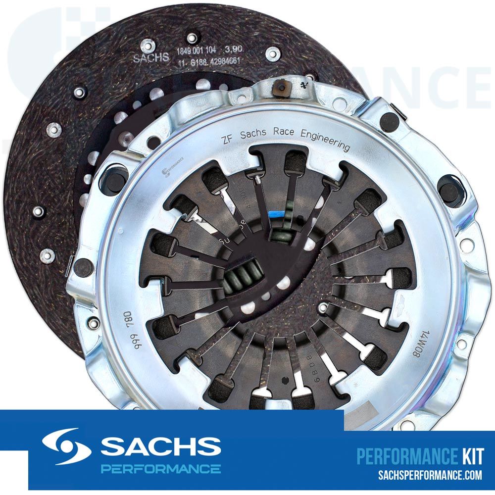 SACHS Performance Kupplungssatz zum Vorteilspreis, bestehend aus der der verstärkten SACHS Performance-Druckplatte und der torsionsgefederten, organischen SACHS Performance Kupplungsscheibe. - Einfacher Austausch gegen Ihre alte Kupplung, das Serien-Schwungrad wird weiterhin mit dem Performance Kupplungssatz 999780.999865 verwendet.