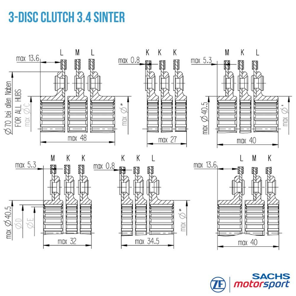 Die SACHS RCS 115 3.4 Kupplungsscheiben sind mit unterschiedlichen Nabenprofilen erhältlich, die exakt auf die jeweilige Getriebeeingangswelle abgestimmt sind. Das garantiert höchste Passgenauigkeit, eine zuverlässige Kraftübertragung und maximale Haltbarkeit im harten Motorsport-Einsatz.