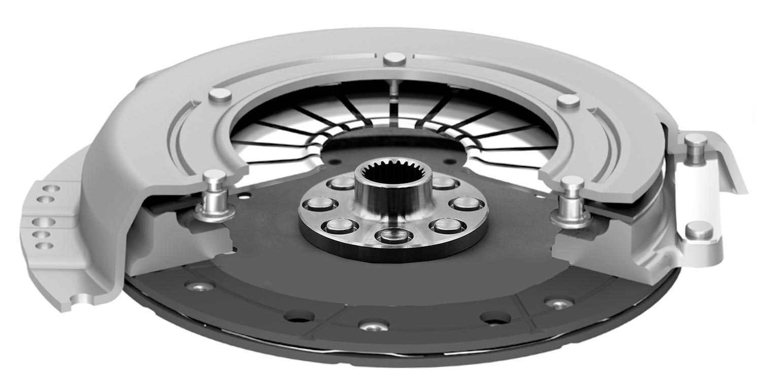 El plato de presión de embrague SACHS Performance está firmemente atornillado al volante de inercia y, cuando está conectado, transmite el par motor al disco de embrague a través de la carcasa, las ballestas tangenciales y el plato de presión.