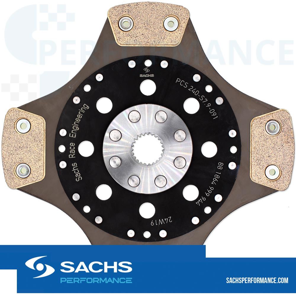 De SACHS Racing koppelingsplaat met sinterlamellenvoering is thermisch zeer veerkrachtig, heeft een hogere toerentalweerstand en een hogere wrijvingscoëfficiënt dan conventionele, organische koppelingsvoeringen. Hierdoor is het mogelijk om het voertuig harder te starten, d.w.z. de koppeling abrupt in te schakelen. Bovendien is de gesinterde metalen koppelingsvoering bijzonder goed bestand tegen vuil en olie. De meegeleverde starre koppelingsplaat heeft minder onderdelen dan de verende versie en is minder gevoelig voor storingen in het grensbereik, terwijl hij tegelijkertijd een hoger koppel biedt.