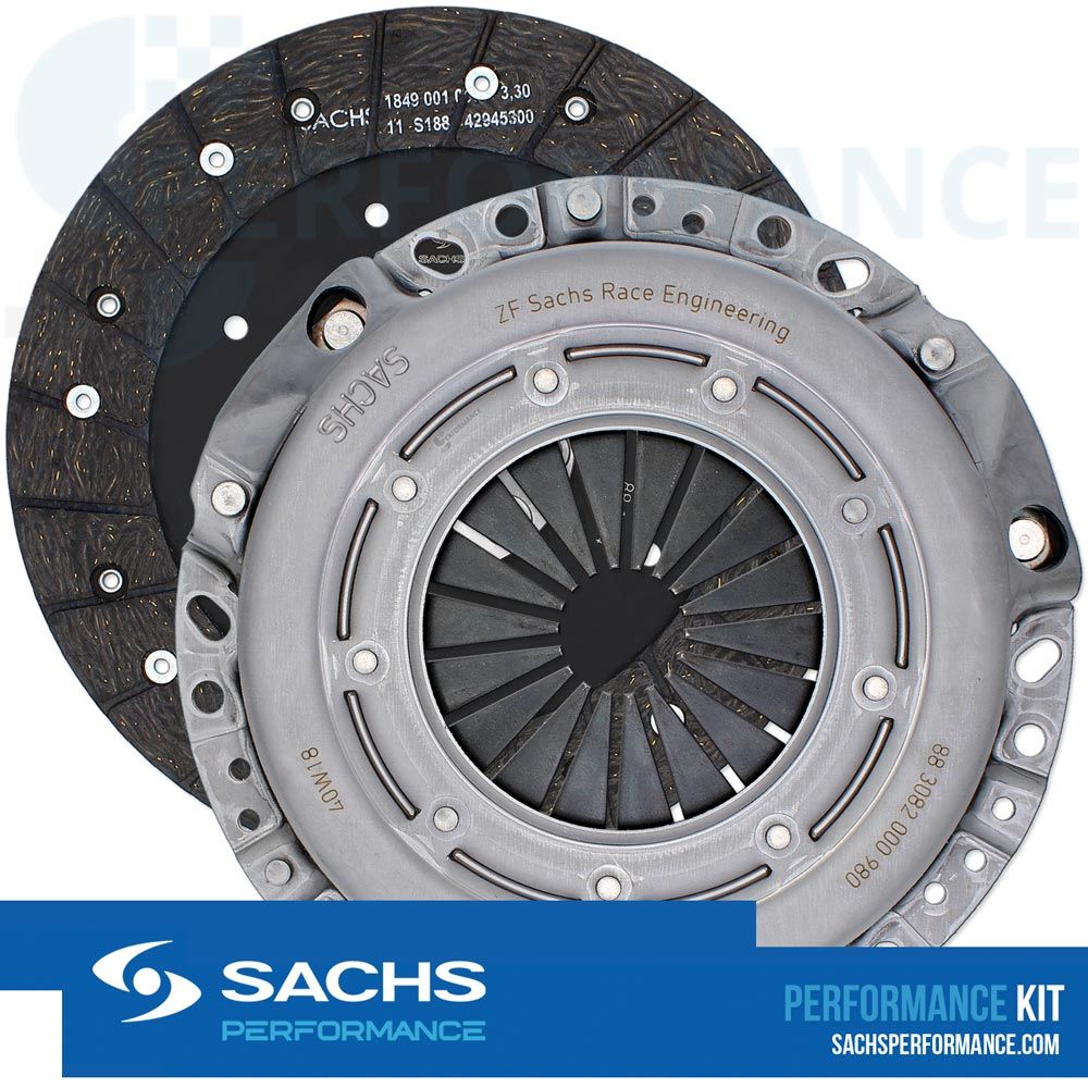 Zestaw sprzęgła SACHS Performance w specjalnej cenie, składający się ze wzmocnionej tarczy dociskowej SACHS Performance i sztywnej, organicznej tarczy sprzęgła SACHS Performance - Prosta wymiana starego sprzęgła, standardowe koło zamachowe jest nadal używane z zestawem sprzęgła wyczynowego 000980.99V104.