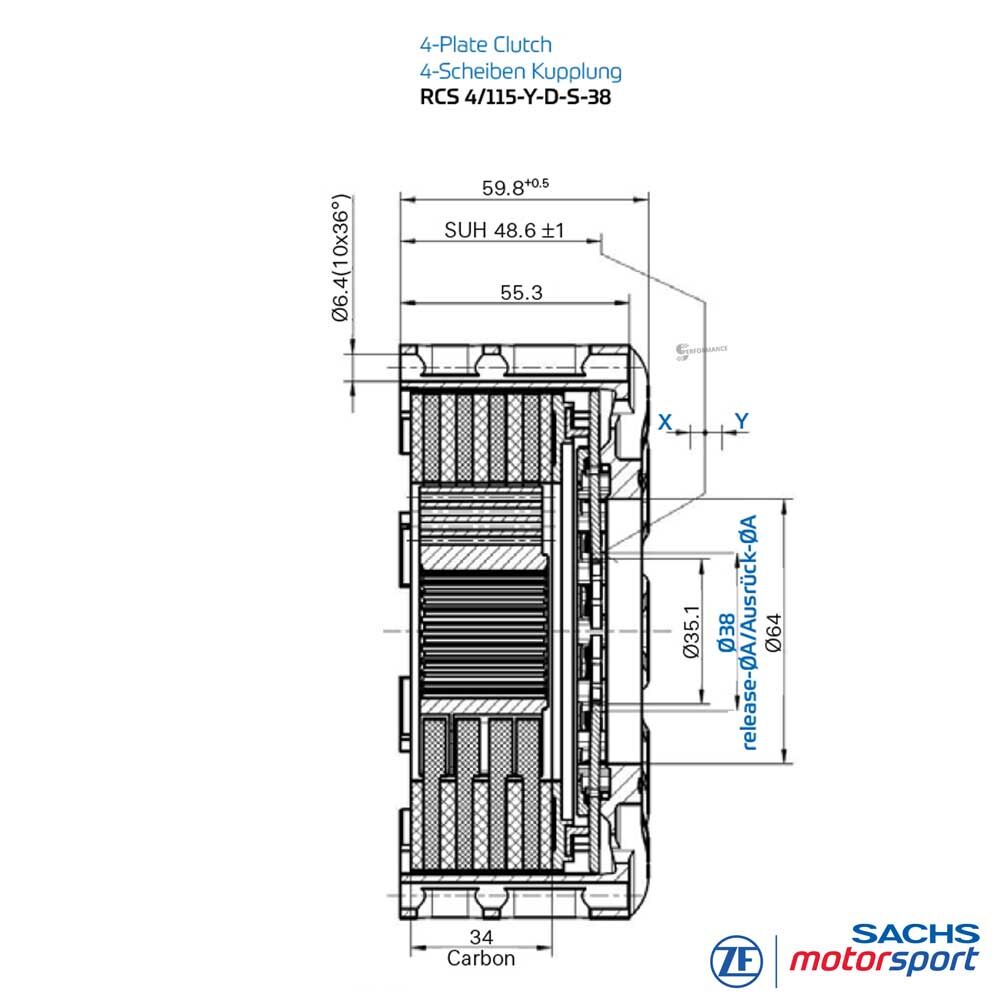 Embreagem de Corrida em Carbono RCC 4/115 - 1150Nm - RCS-4-115-Y-D-S-38