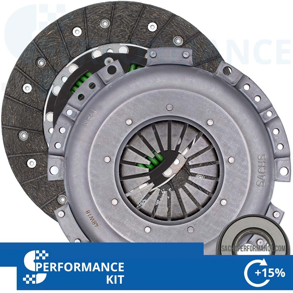 Inkluderar SACHS-kopplingstryckplattan, kopplingslamell med Performance-kopplingsbeläggning och SACHS urtrampningslager.