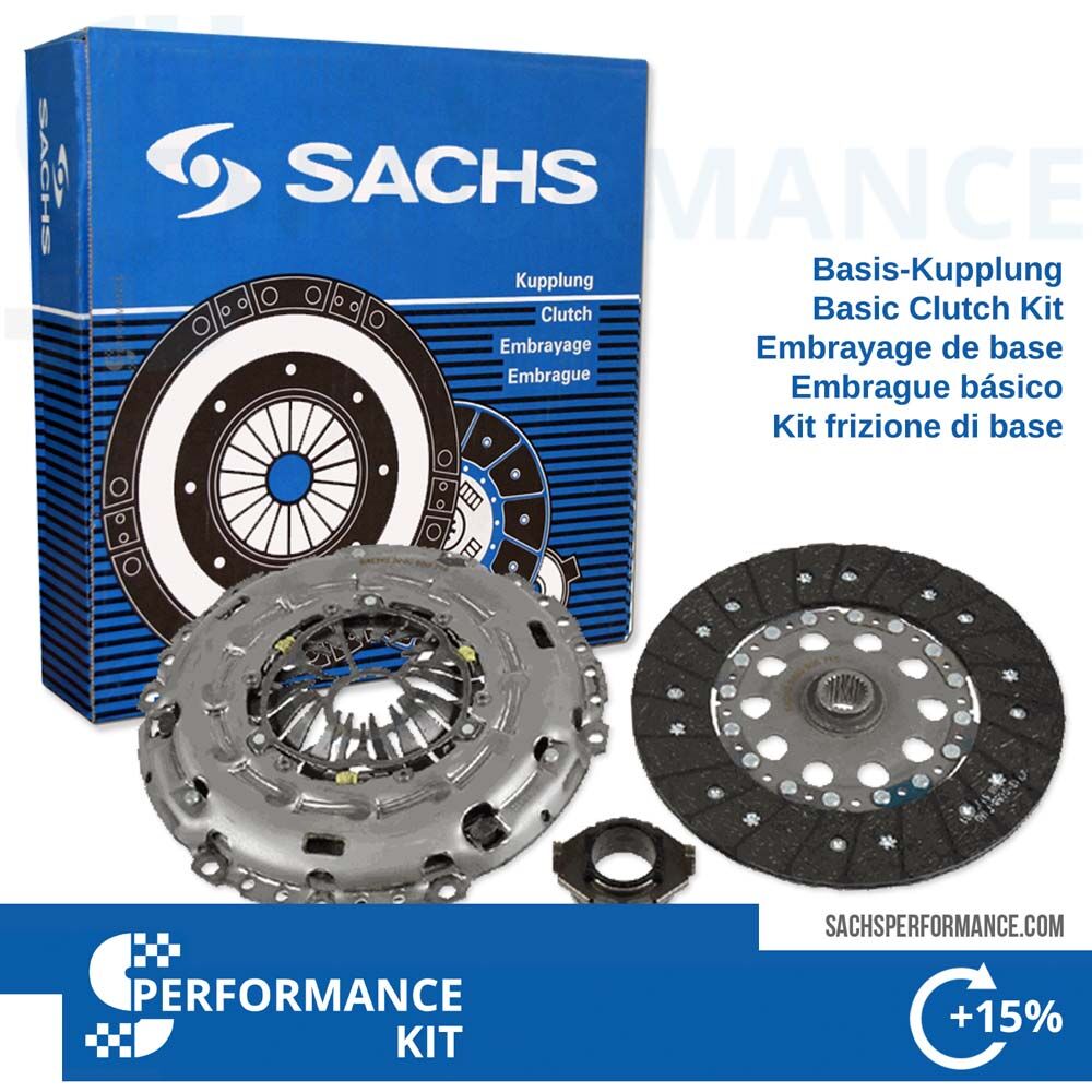 Inkluderar SACHS-kopplingstryckplattan, kopplingslamell med Performance-kopplingsbeläggning och SACHS urtrampningslager.