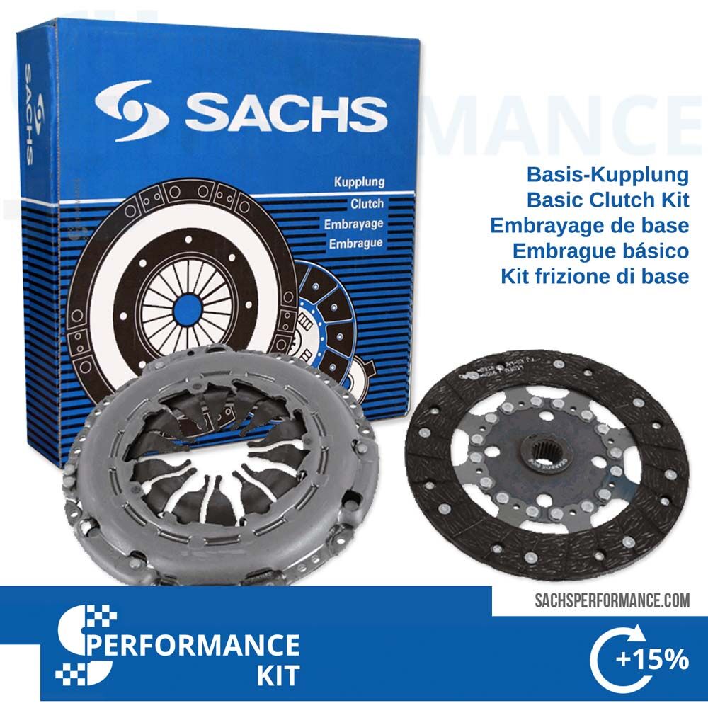Inkluderar SACHS-kopplingstryckplattan och kopplingslamell med Performance-kopplingsbeläggning.