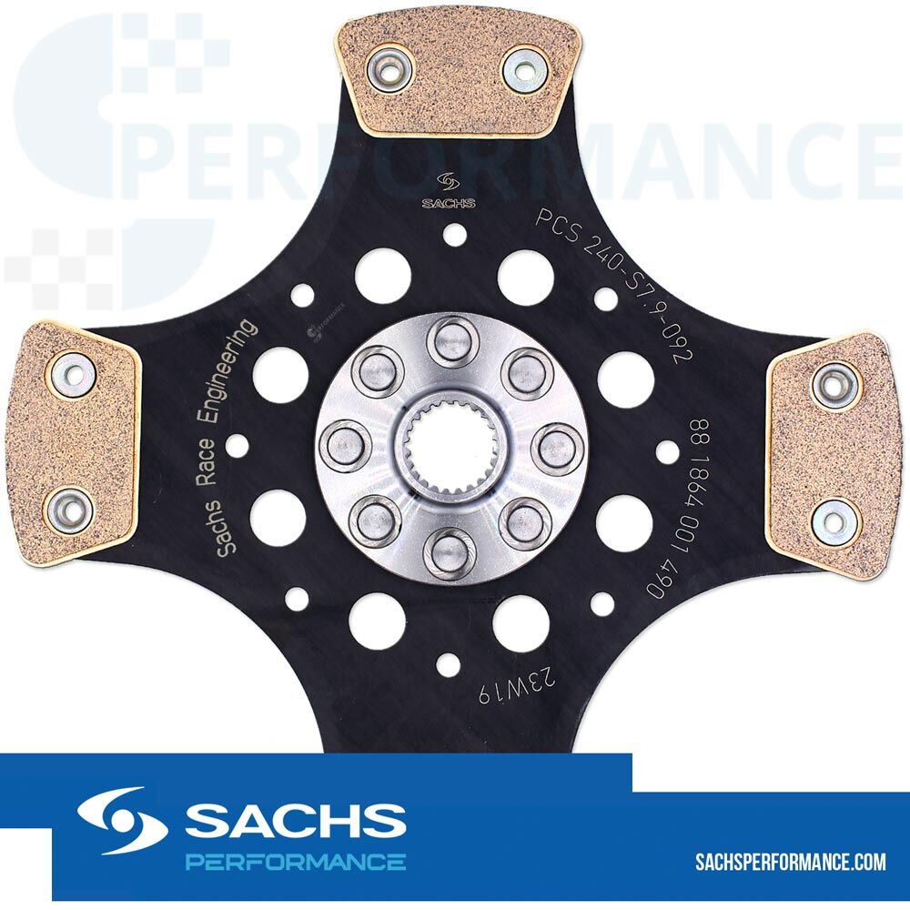 SACHS Racing-kopplingsskivan med sintrad metall-kopplingsbelägg är termiskt mycket elastisk, har högre varvtalsmotstånd och högre friktionskoefficient än konventionella, organiska kopplingsbelägg. Detta gör det möjligt att starta fordonet hårdare, dvs. plötsligt kopplingsengagemang. Dessutom är det sintrade metallkopplingsfodret särskilt motståndskraftigt mot smuts och olja. Den medföljande styva kopplingsskivan har färre komponenter än den fjädrade versionen och är mindre känslig för fel i gränsvärdena samtidigt som den erbjuder högre vridmoment.