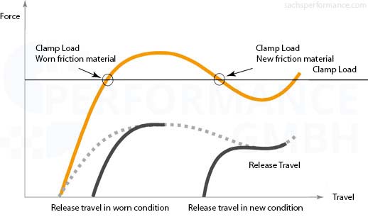 En sluten koppling alstrar en tryckkraft med hjälp av en membranfjäder. Ju starkare denna fjäder är utformad, desto mer motormoment kan kopplingen överföra. För att koppla ur kopplingen, måste föraren anbringa den så kallade frigöringskraften. Ju högre frigöringskraft, desto svårare är det att aktivera kopplingen.Koppling slitagebredd